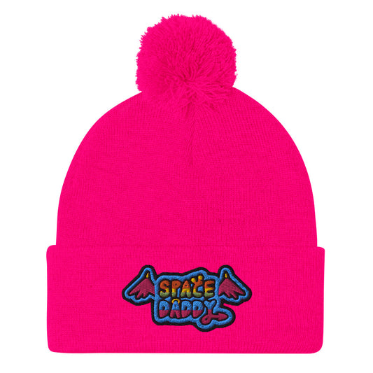 Space Daddy Pink Wing Pom-Pom Beanie