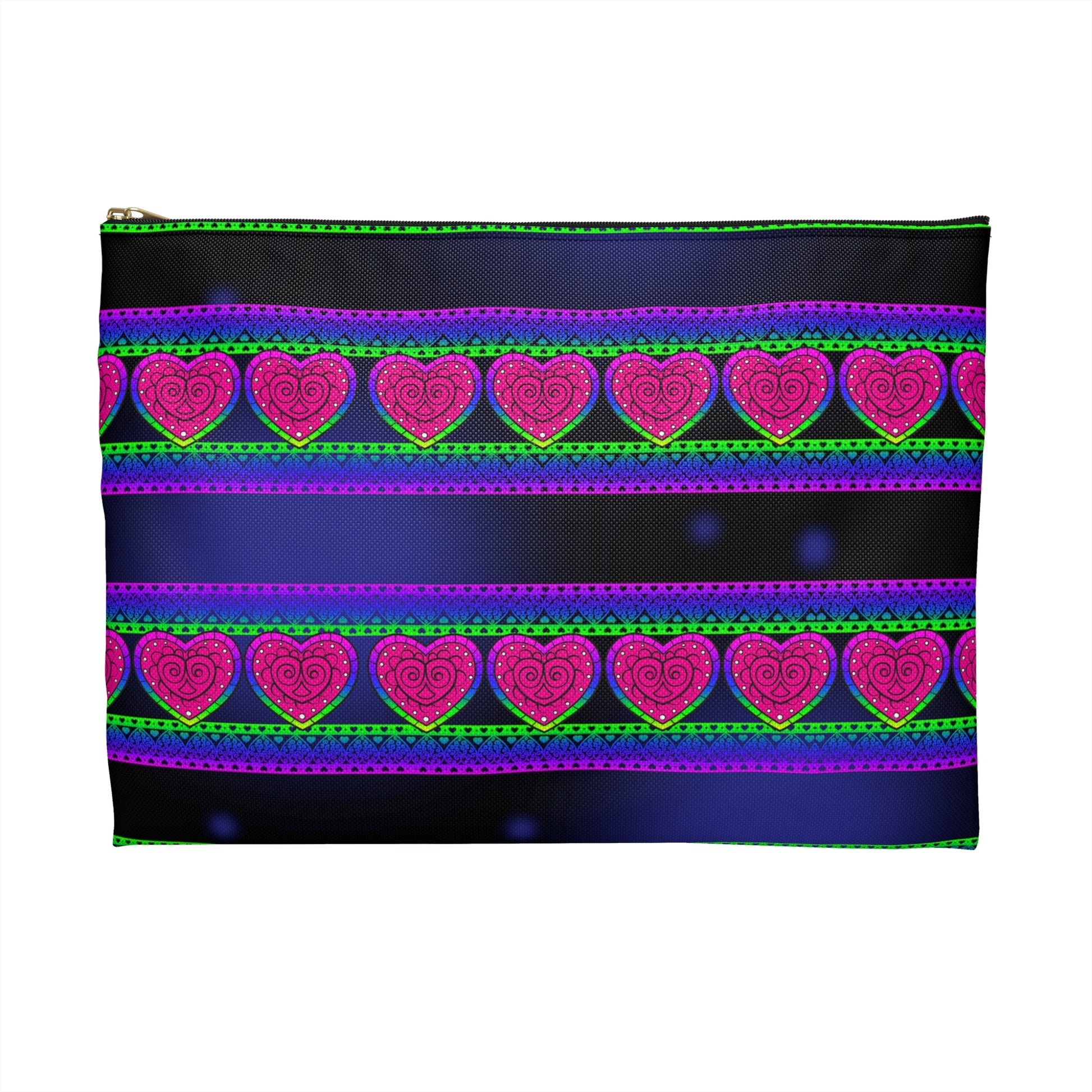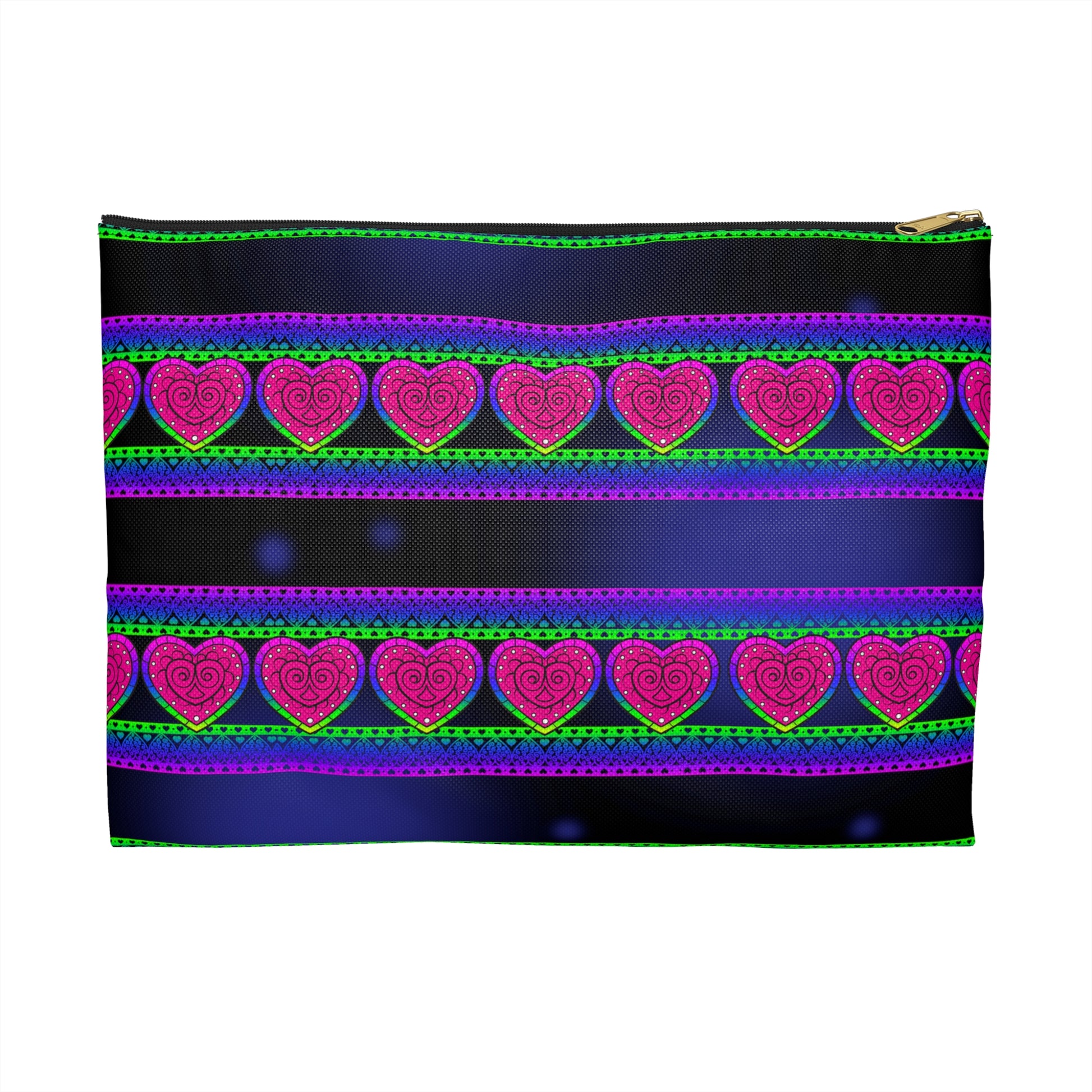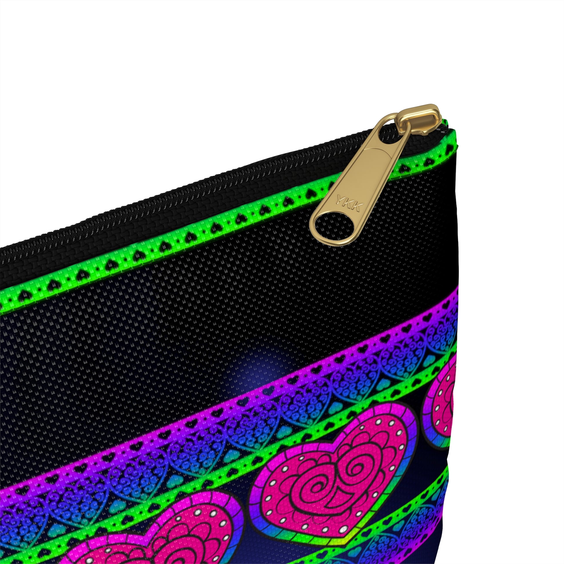 This Dark Heart Accessory Pouch is sure to turn heads! Made from specially spun polyester threads and with a zipper closure, it'll stay shapely and wrinkle-free - no ironing required! Its eye-catching Vibrant Dark Heart pattern adds a naughty edge that's perfect for your stash! Assembled with love in the USA from globally sourced parts. Now that's good lookin'!
