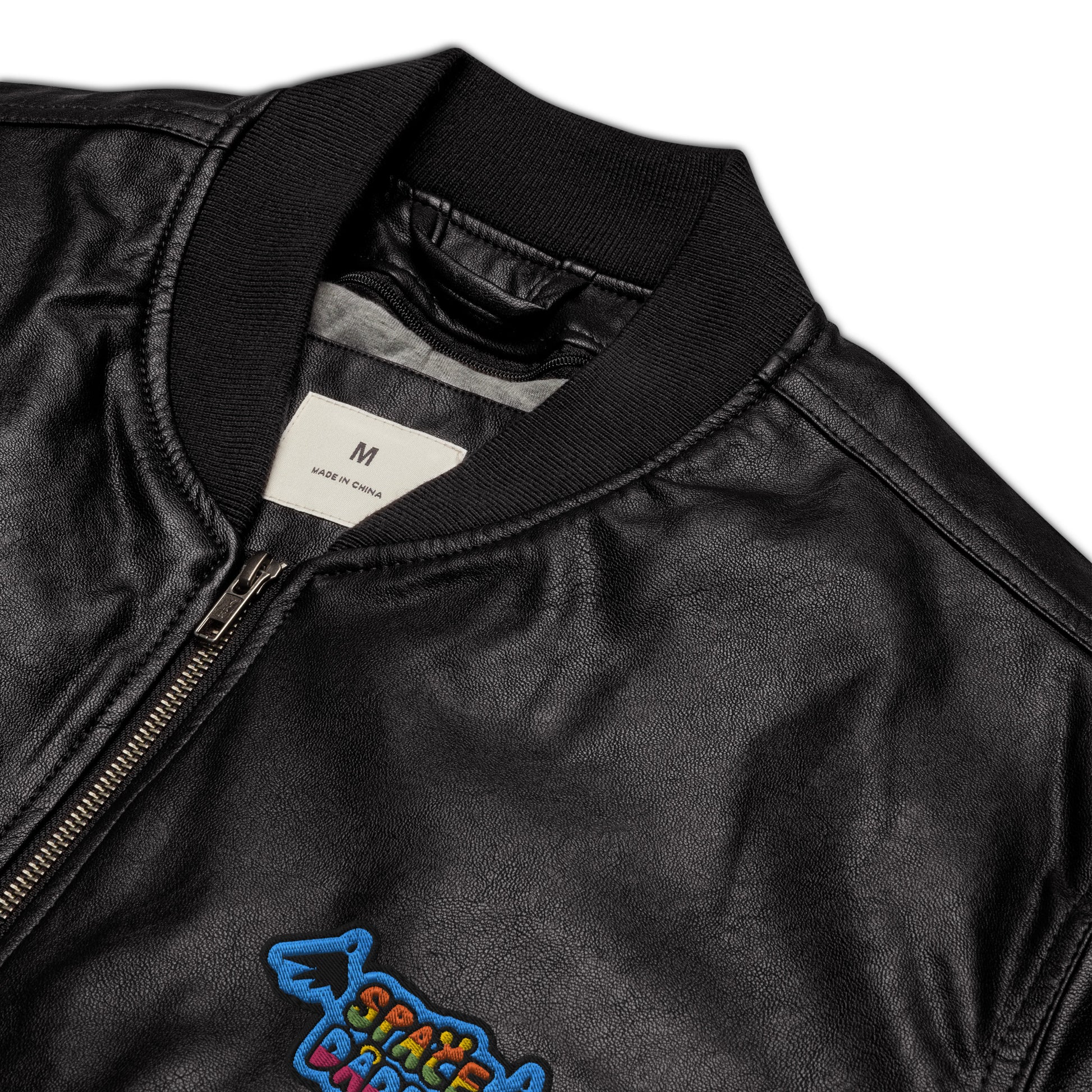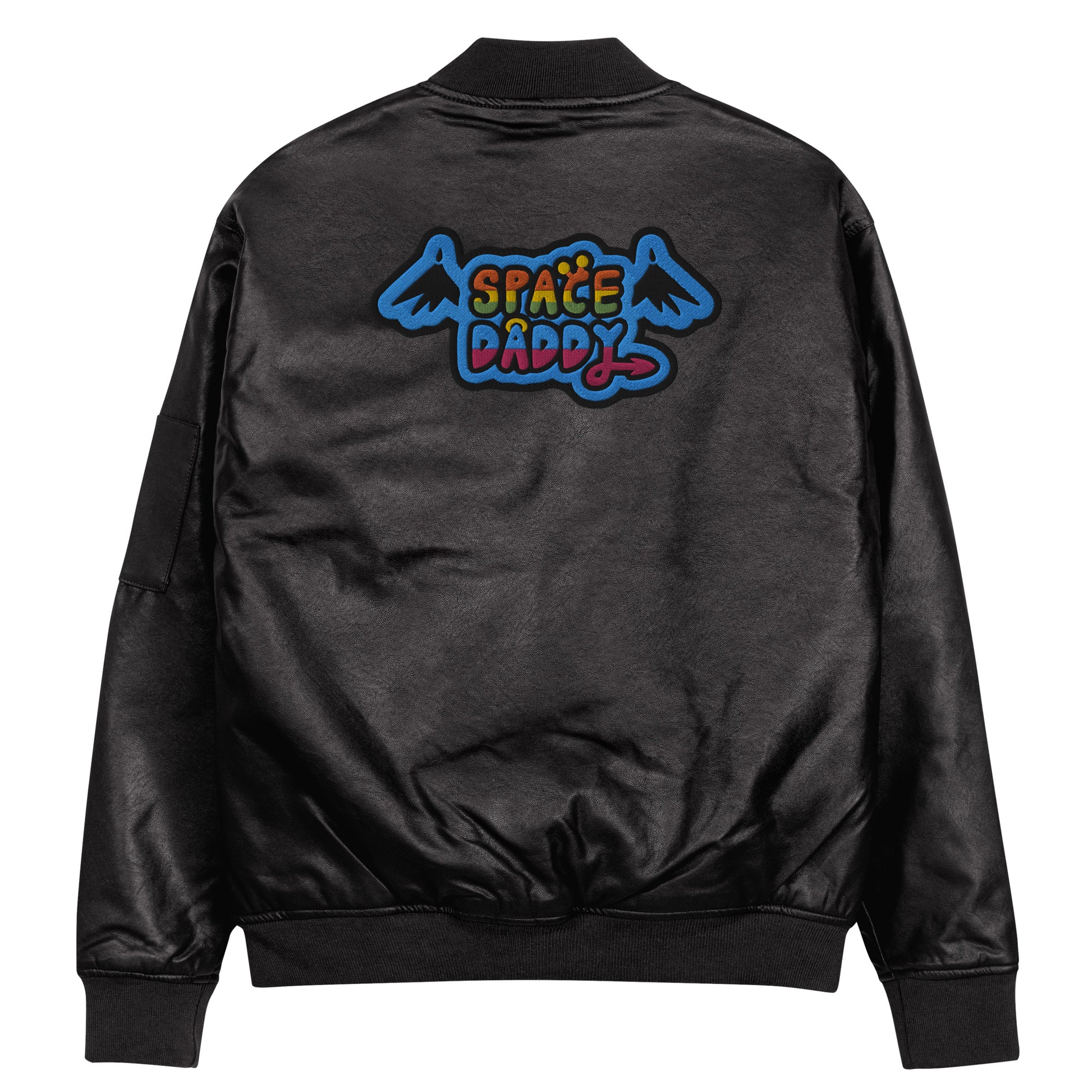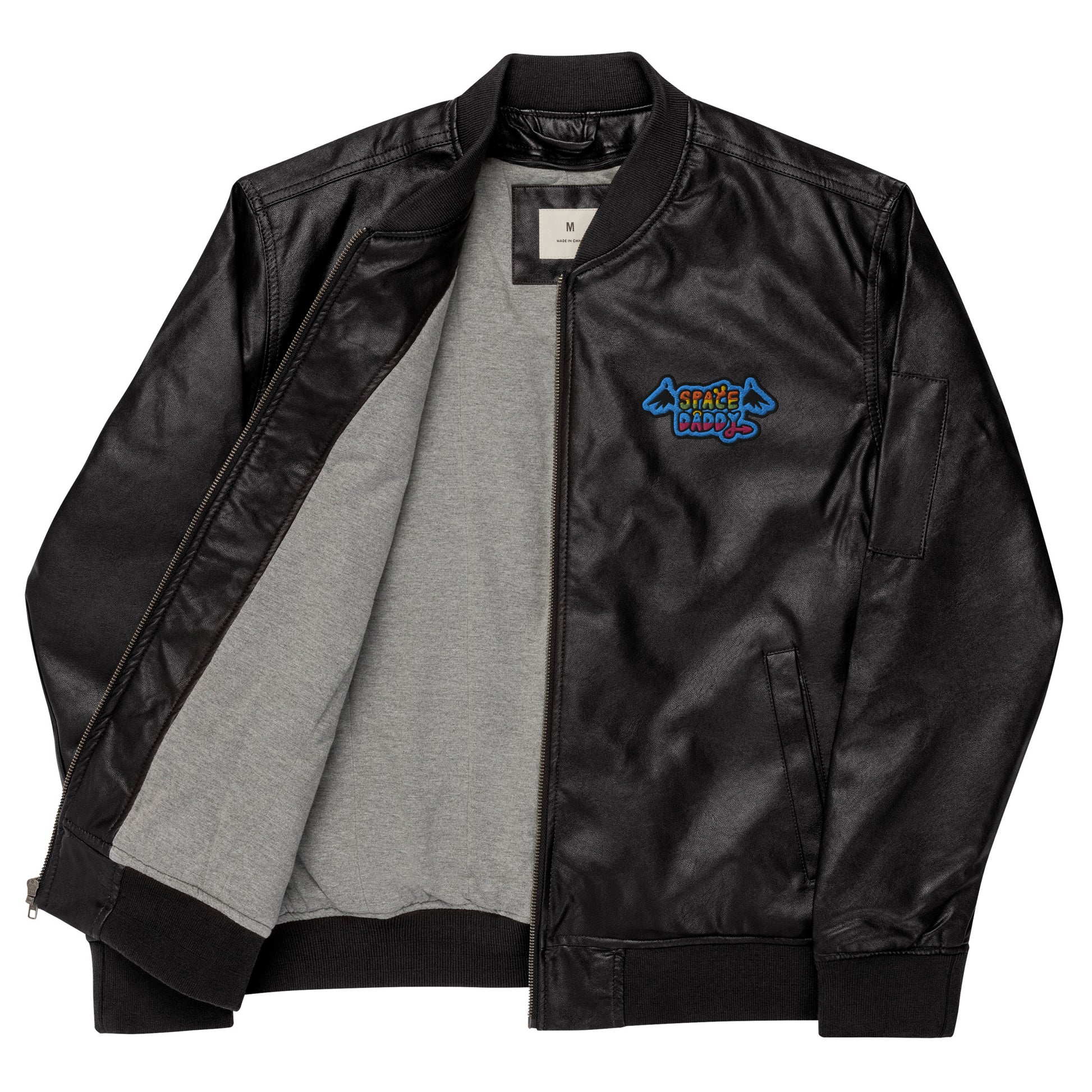 Be da bomb with the Space Daddy Faux Leather Bomber Jacket.
