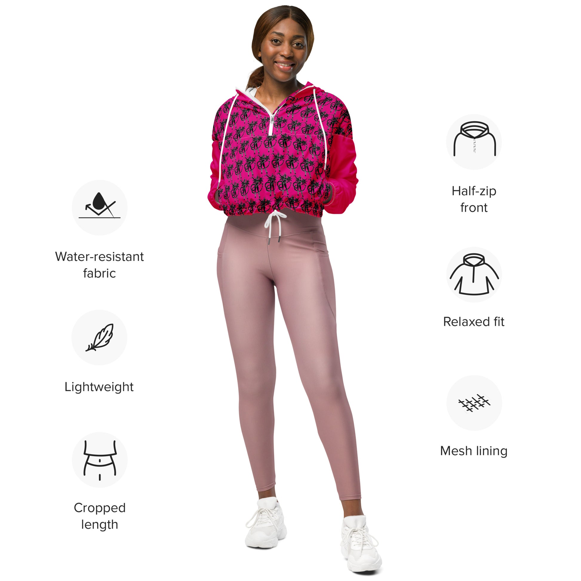 Be anything but static in this vibrant Space Daddy Naughty Angel Cropped Windbreaker. This playful piece boasts a relaxed fit, water resistance and a mesh lining that ensures air circulation and increases ventilation - plus the unique Naughty Angel Pattern will show Daddy how daring you can be! Update your wardrobe and make an impact with this stylish statement.