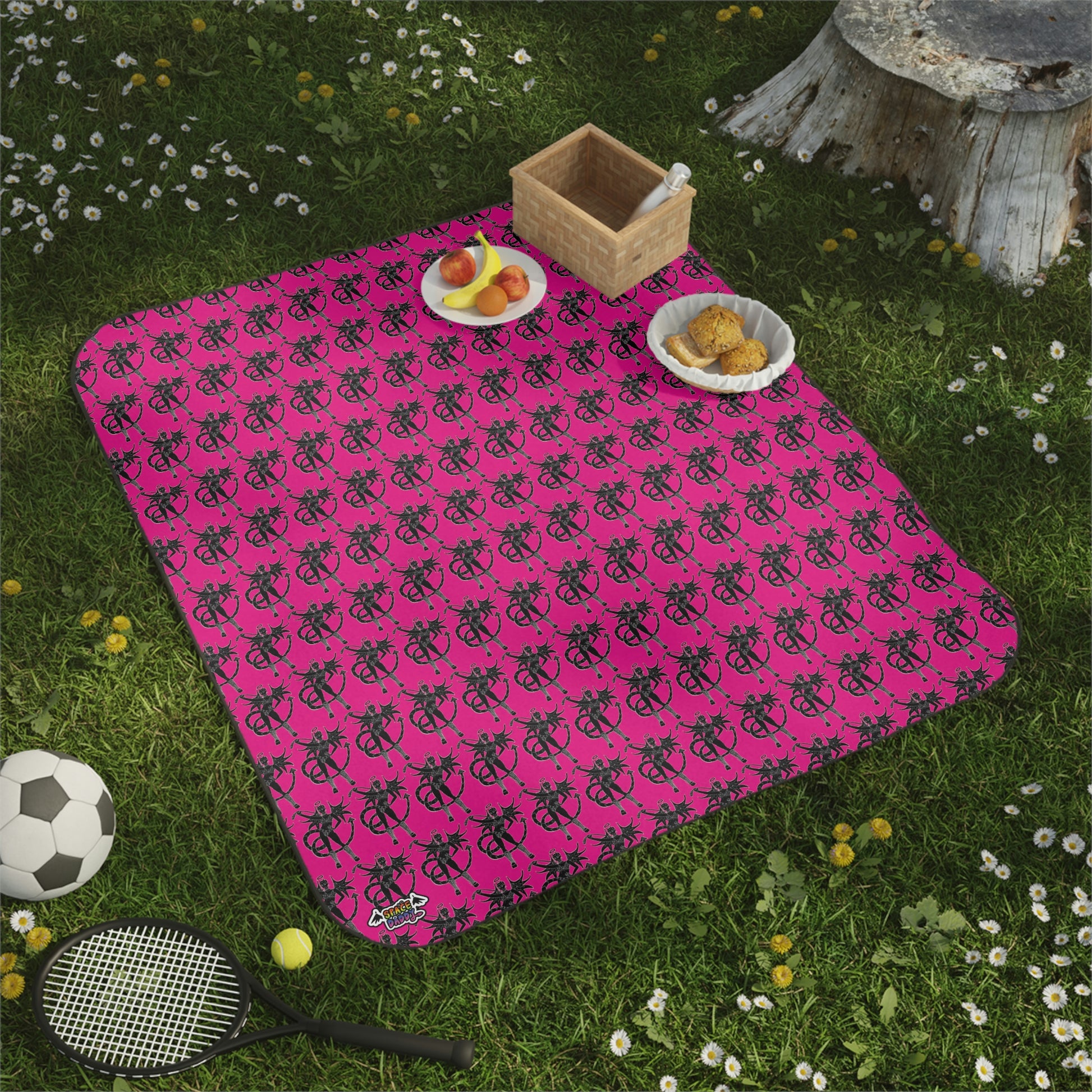 Experience the ultimate comfort of Space Daddy's Naughty Angel Picnic Blanket! Whether you're enjoying live music or on an outdoor adventure, this 61" x 51" blanket is perfect. Soft mink polyester on the front is luxuriously soft, while a water-resistant bottom keeps the fun dry. With a buckled carrying strap and quick-drying fabric, it's ready to hit the road! Let's picnic with a naughty angel!