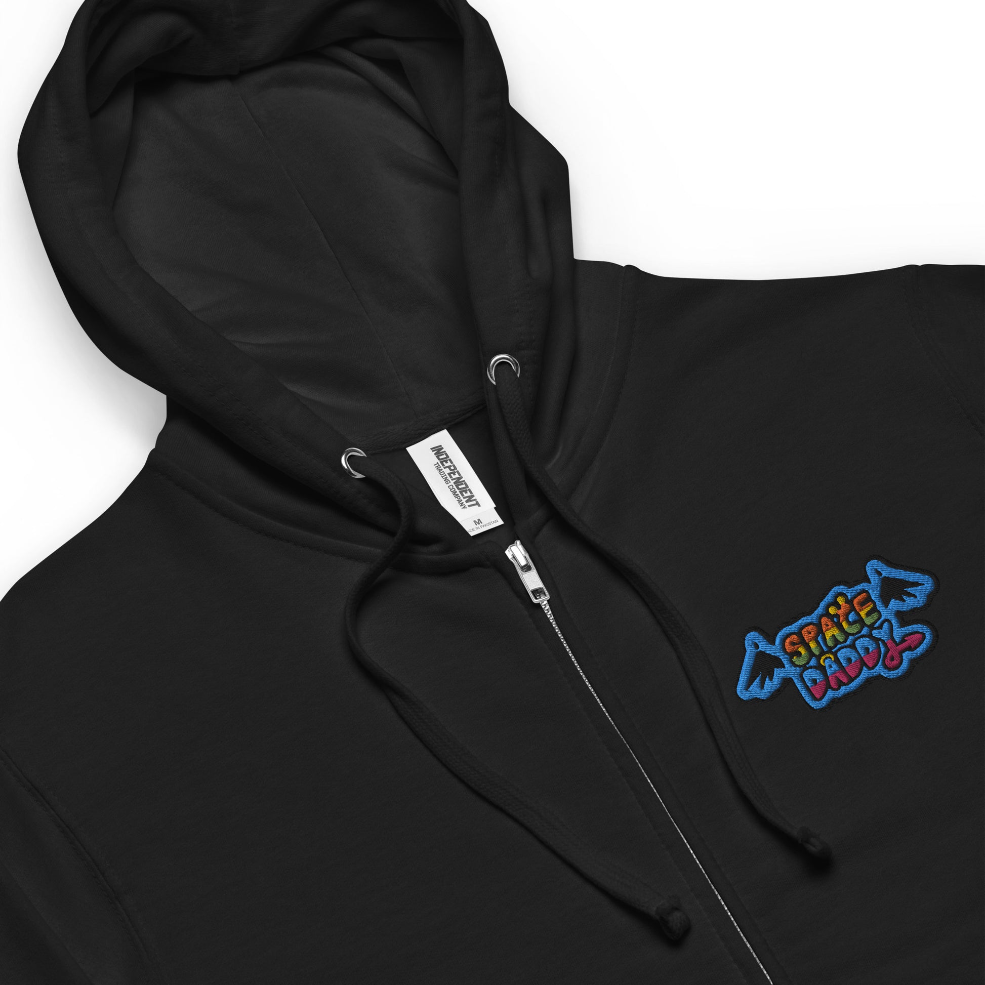 Space Daddy Embroidered Black Zip Hoodie